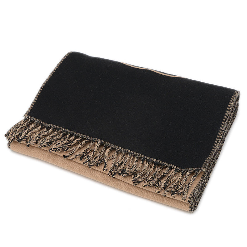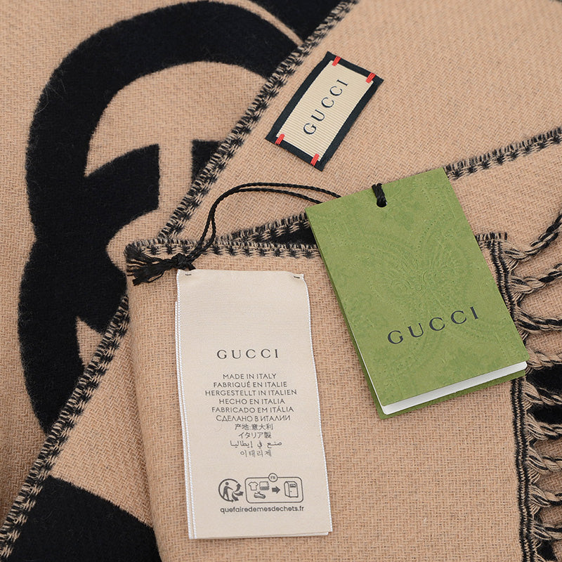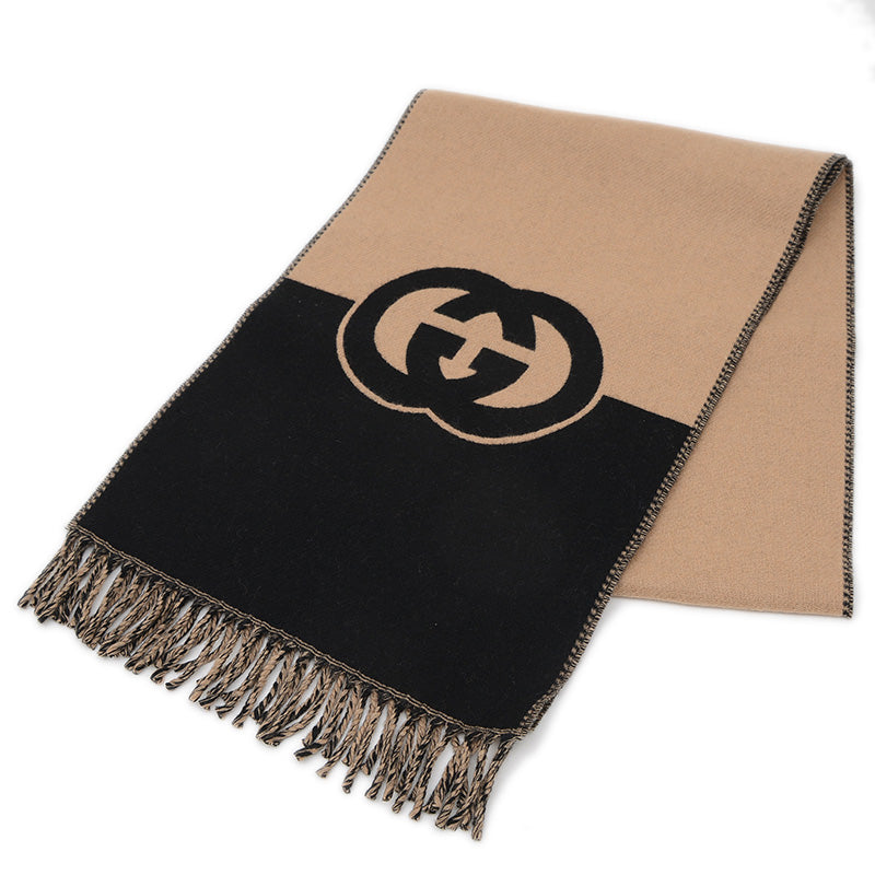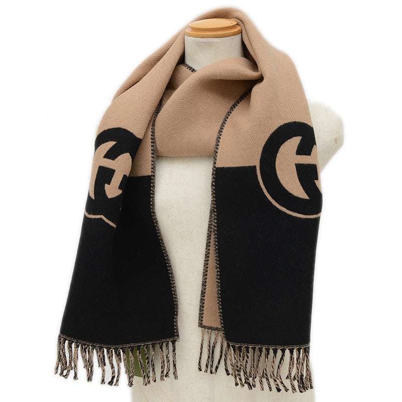 インターロッキングG マフラー ウール/カシミヤ ブラック/ベージュ 715497 マフラー